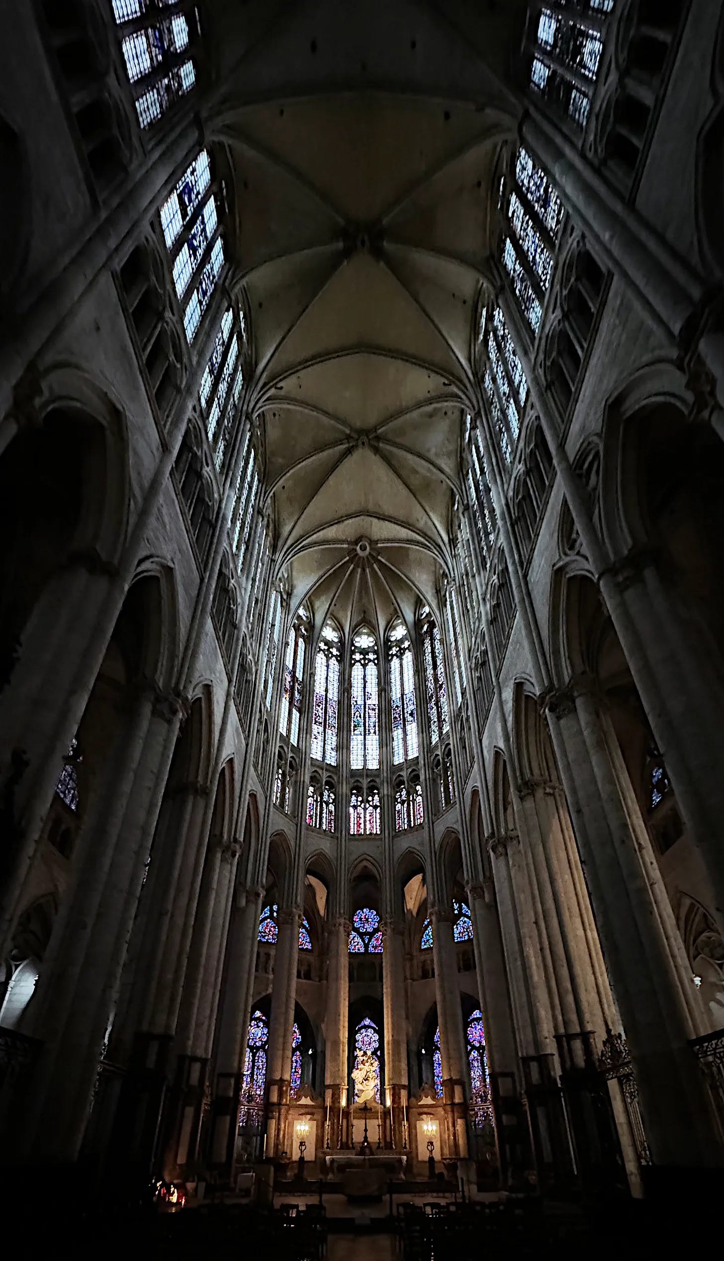The vertical thrust of Gothic architecture operates on your proprioception, that internal sense of your body’s position in space. When columns rise thirty or forty meters on proportions so slender they seem to violate physical law, your brain receives conflicting information. You know intellectually that stone that thin cannot support such weight at such heights, yet there it stands. This cognitive dissonance triggers a specific response: your sense of scale collapses. The builders knew exactly what they were doing when they calculated these proportions. Documents from medieval building lodges show master masons working with ratios designed specifically to maximize the sensation of impossible height. They wanted you to crane your neck until it hurt, to feel your own body’s smallness as a physical ache. When you stand at the crossing of Beauvais Cathedral, the tallest Gothic vault ever constructed, the space above completely dwarfs you. Your individual existence becomes a problem to be solved through submission to something vast enough to fill that terrible emptiness overhead.